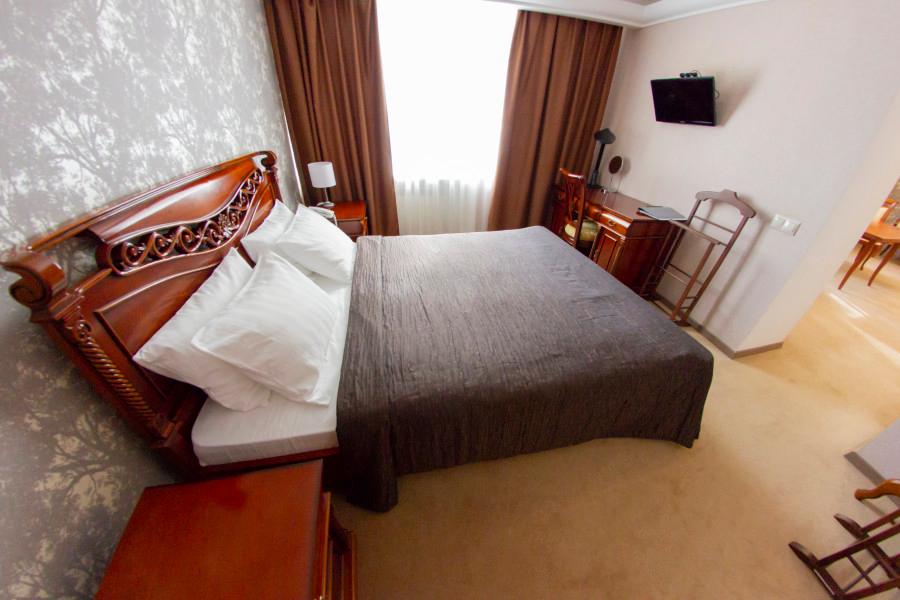 Просторные комфортабельные номера Люкс состоят из нескольких комнат, интерьер номеров выполнен в светлой цветовой гамме, особый вид располагает к отдыху.
