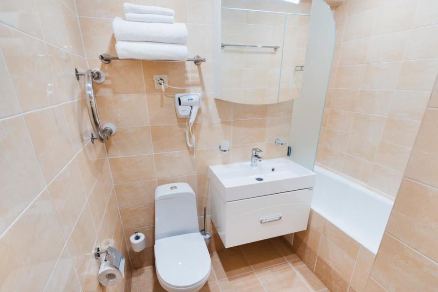 Номер «люкс» - самый большой и лучший номер в гостинице с гостевой зоной и кроватью размера king-size. Проживая в этом номере, Вам не нужно будет беспокоиться о банном халате, тапочках – все это включено в стоимость проживания. Стоимость от 8400